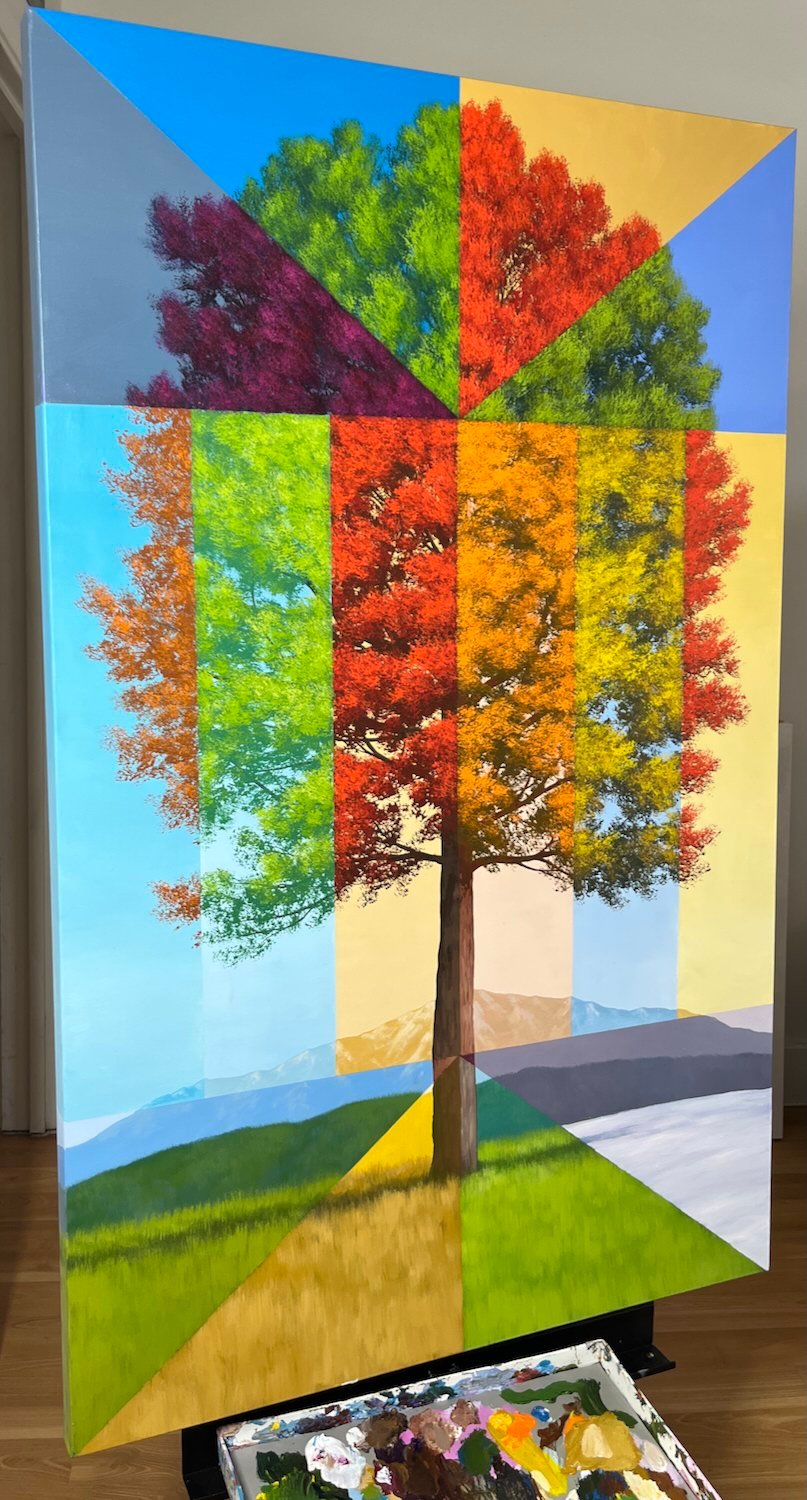 This is a unique piece from my popular timeline tree painting series. This collectible piece is one of a kind. Painting comes unframed, and is signed in the lower right hand corner.