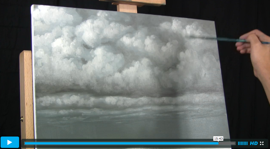 Learn to paint amazing clouds from start to finish using oil in Clouds In Oil Lesson 3 – the third installment of the popular Clouds In Oil series. In this roughly 1.5 hour long lesson, I’ll show you how to paint my “Never Ending” clouds in oil. I’ll demonstrate which brushes, colors and mediums I used to achieve the dramatic, stormy clouds in this painting. Note: Only the clouds are covered in this lesson. The surrounding landscape is not covered.